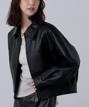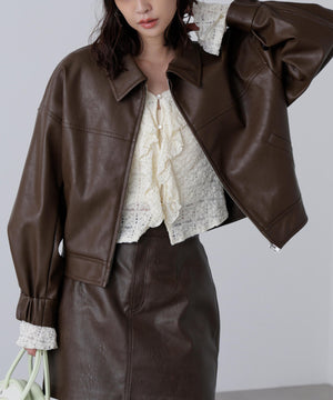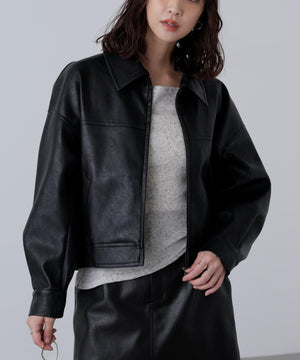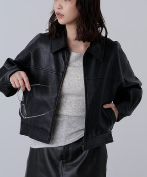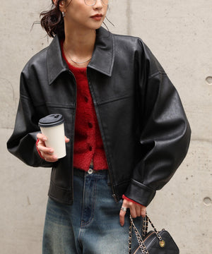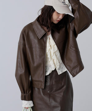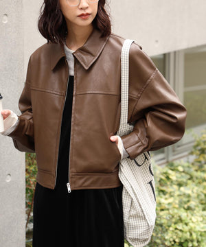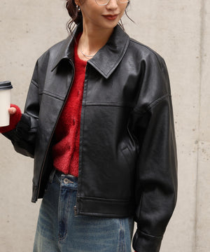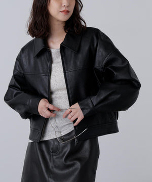 合皮ジップアップブルゾン