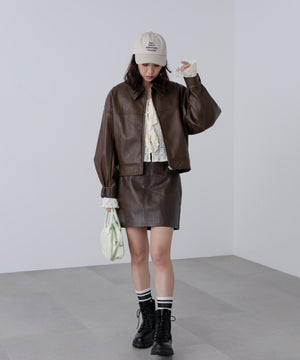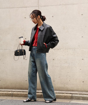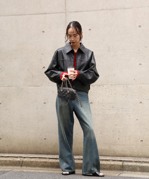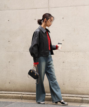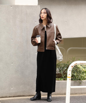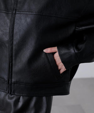 昨年ご好評いただいたアイテムが、素材をアップグレードし新色を加えて登場!リアルレザーに近い素材を厳選し、フェイクレザーとフェイクスウェードの質とシボ感に拘ったブルゾンです。裾の後ろはゴムギャザーとタックを入れ、着用すると後ろに抜ける立体的なフォルムが特徴です。程よいショート丈なのでパンツもスカートも◎。アームホールも大きめなので、スウェットや厚手のニットの上からでも着用いただけます。幅広いテイストのスタイリングに便利で、カジュアルからモードシック、Y2Kまでコーディネートに取り入れやすくておすすめです。