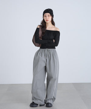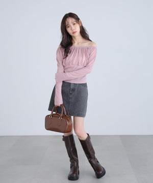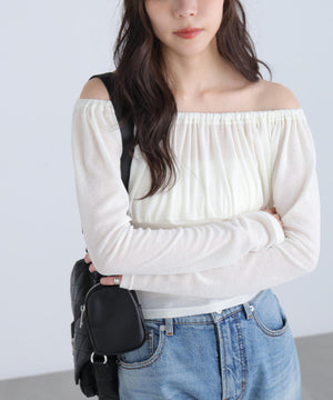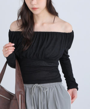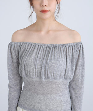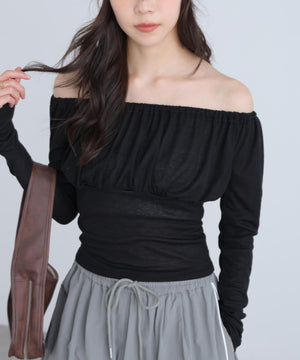 オフショルシアーギャザーカットソー
