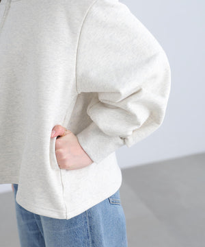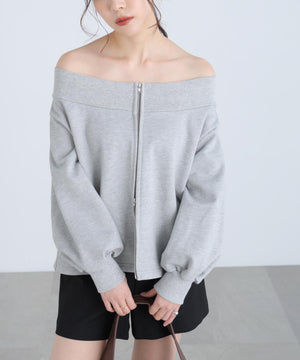 【着映えスウェット】ふっくらした丸いシルエットがかわいいオフショルタイプのトレンドスウェット。高級感のあるほどよくしっかり感のあるきれいなスウェット素材を使用しています。インナーにタートルやキャミソール・シャツ合わせなど、様々なスタイリングが楽しめるデザイン。逆開ファスナーで開き具合の調節可能。デニム・ショートパンツ・バルーンスカート・チェックスカート・スラックス合わせもおすすめです。ZIPを背面にして、シアードッキングカットソーとのレイヤードも楽しめます。