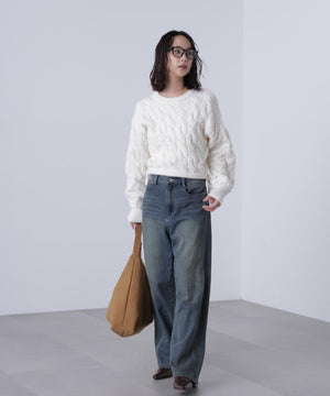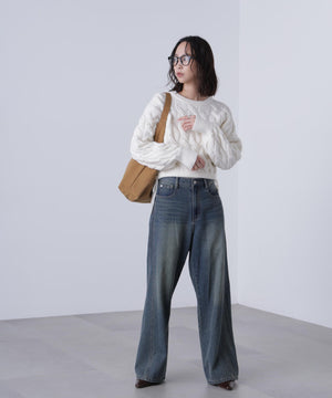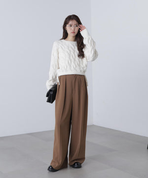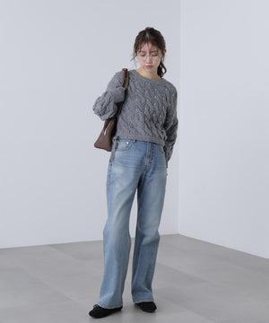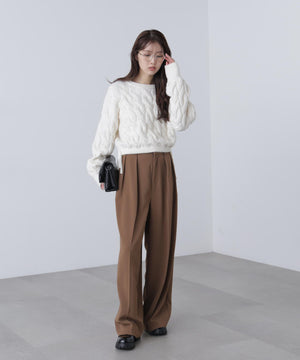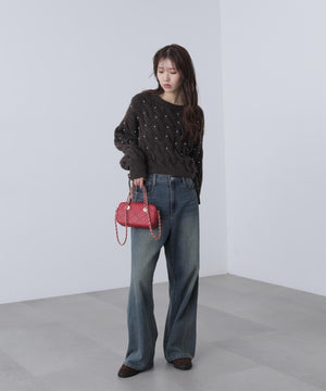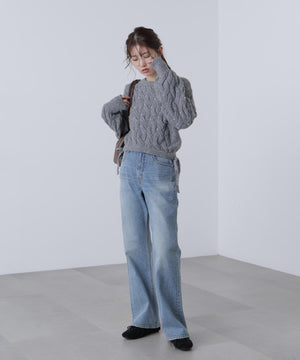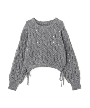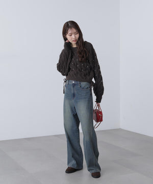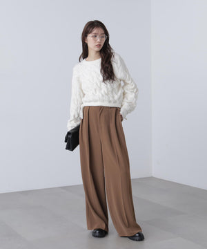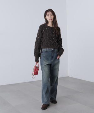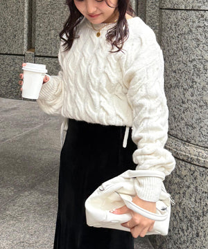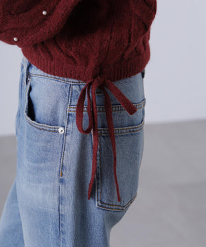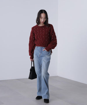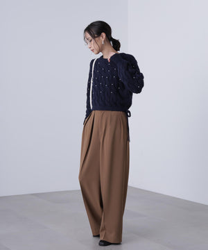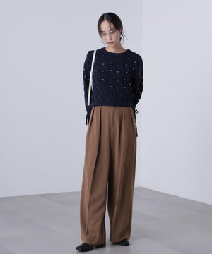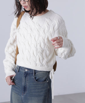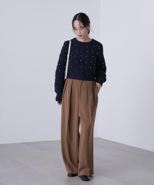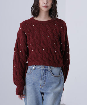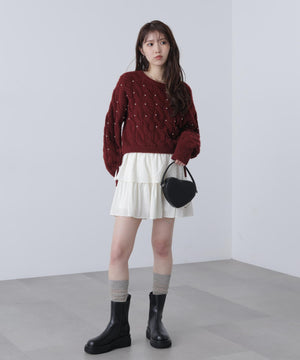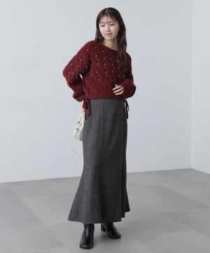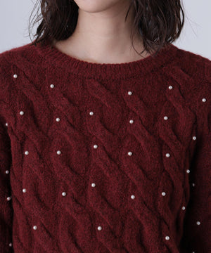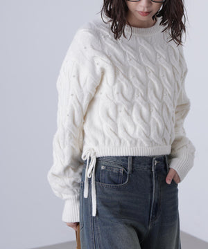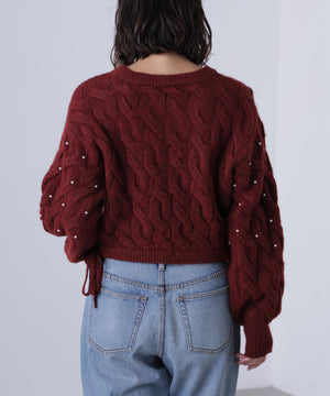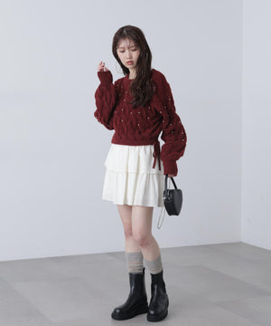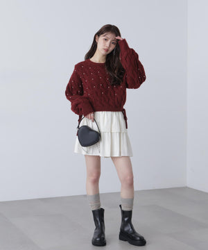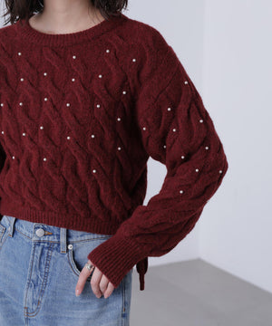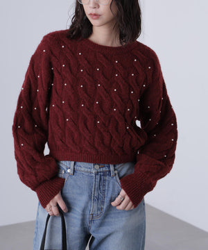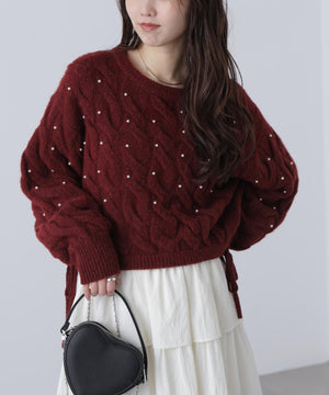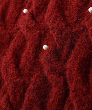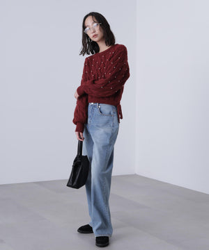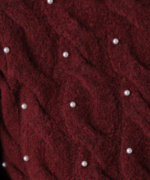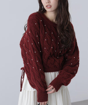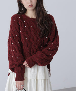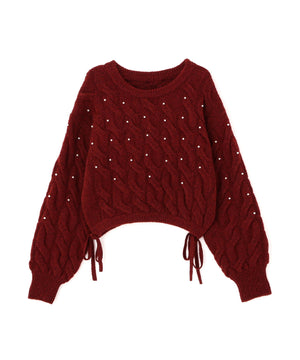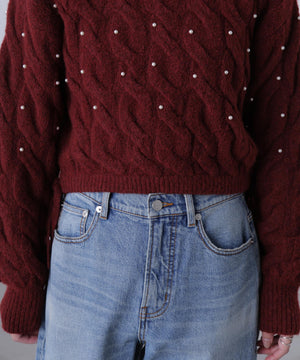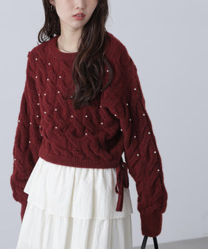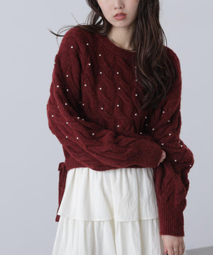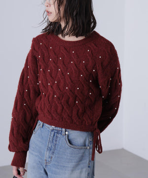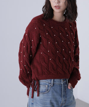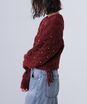 【レッド 追加生産予約】ウエストゴムパールミックスケーブルドロストニット