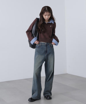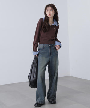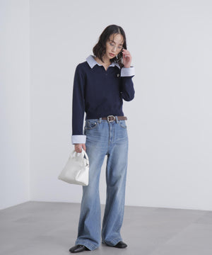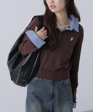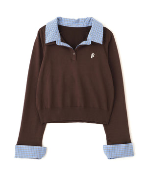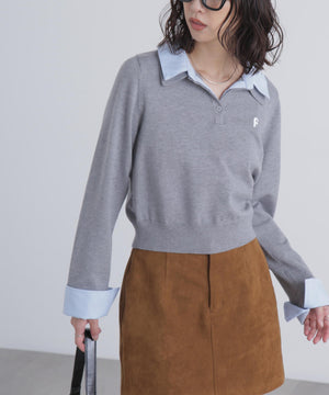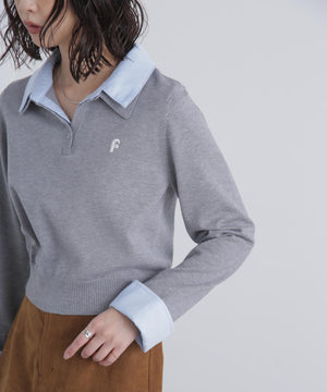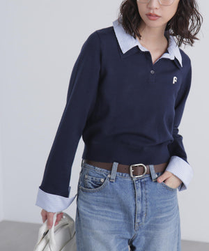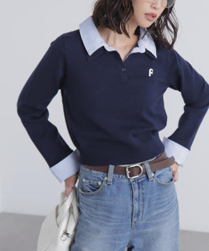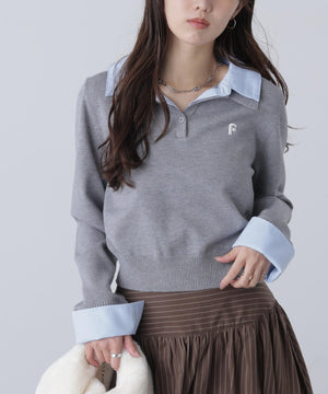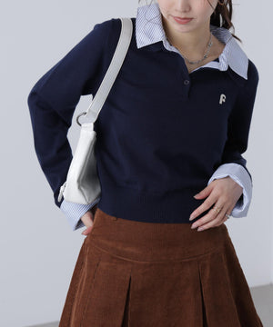 衿付きレイヤード風ポロニット