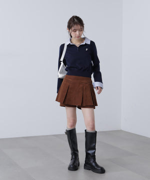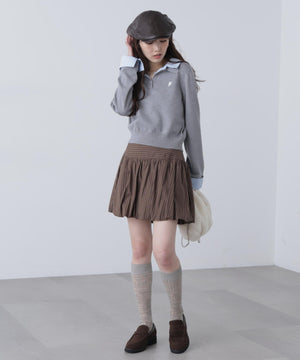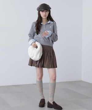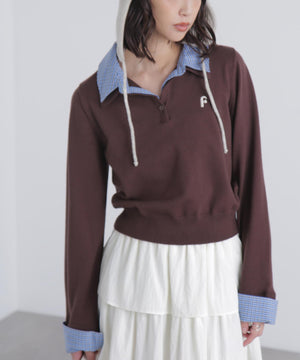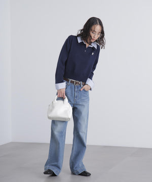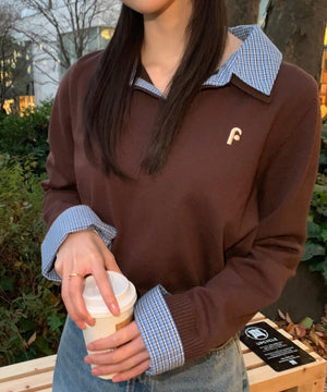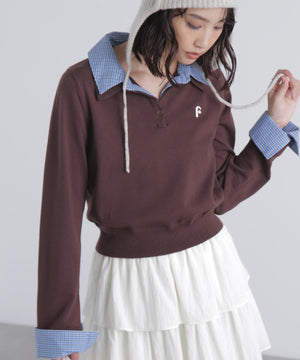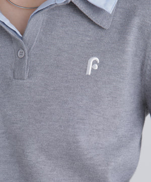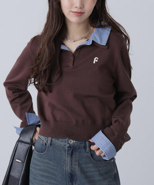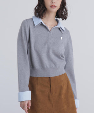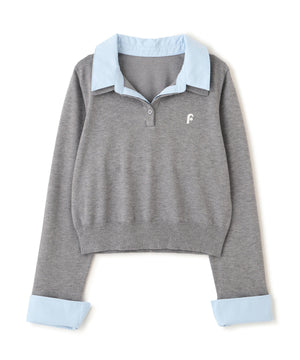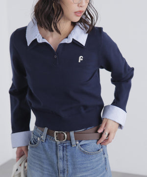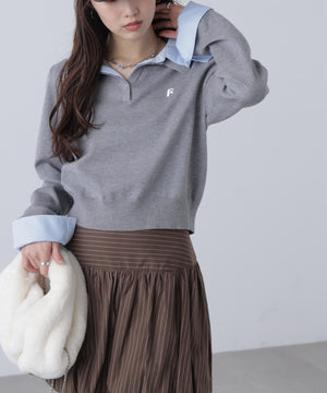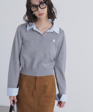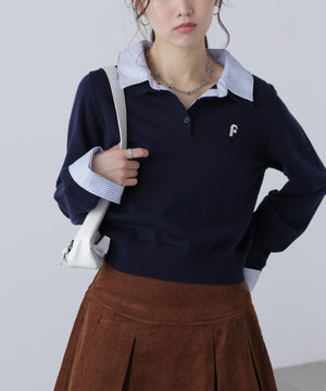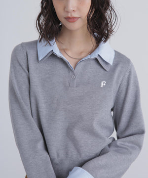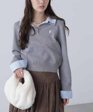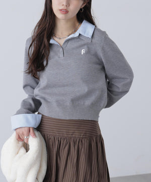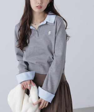 ご好評いただいているポロニットを、秋冬らしい糸にかえて再登場!暖かみのある膨らみともちっと感のある糸を使用。配色はそのまま、グレーのみ秋冬らしく「杢グレー」になっています。ニットポロにシャツをレイヤードしたようなドッキングデザインです。トレンドのレイヤードスタイリングが1枚着るだけで完成します。左胸にはブランドロゴの頭文字を取った「F」刺しゅう入りでプレッピーな雰囲気に。ミニスカート合わせでヘルシーなプレッピースタイリングが今年らしくておすすめ。袖はたくし上げたり、カフスは伸ばしたままでも折り返しても着ていただけます。
