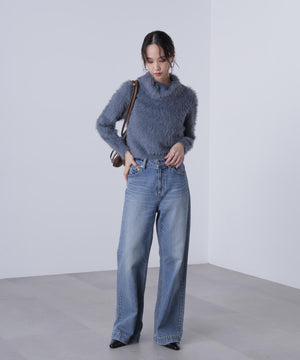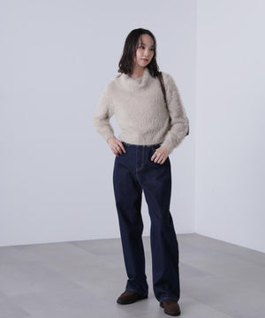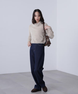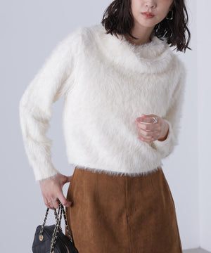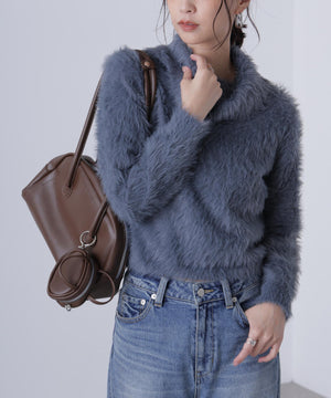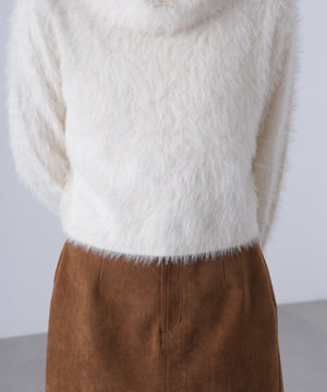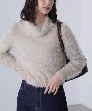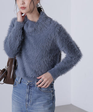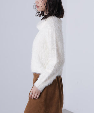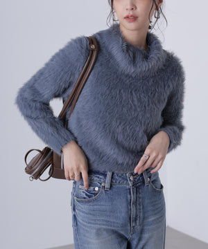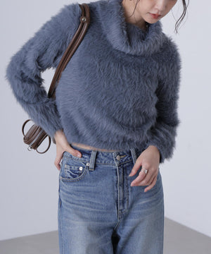 【1枚でスタイルアップ主役級ニット】着るだけで冬気分のタートルニット。ふわふわとした毛足の長いシャギー素材を使用しています。1枚で着ても、コートのインナーにも相性バツグン。首のボリュームタートルとクロップド丈の組み合わせで、スタイルアップ見えが叶います。イレヘムスカートやワイドデニム・スラックス・バルーンミニスカートやショートパンツ合わせもおすすめです。