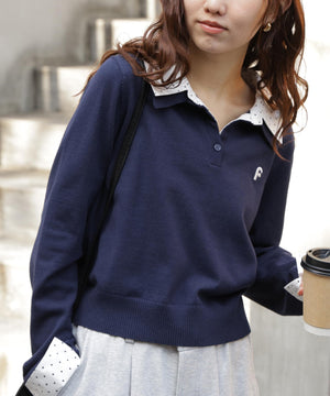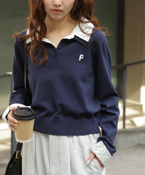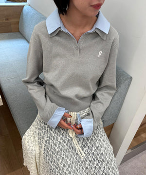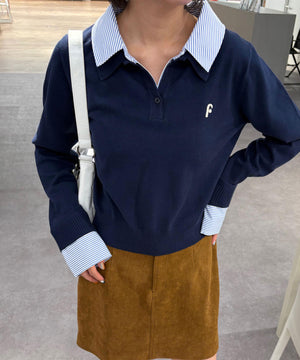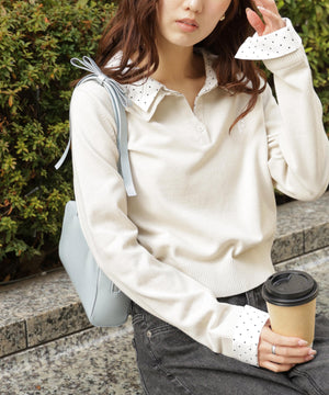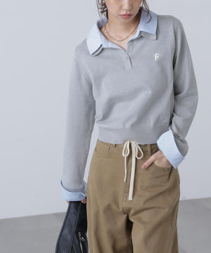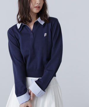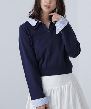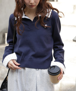 衿付きレイヤード風ポロニット