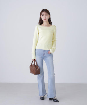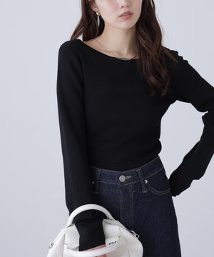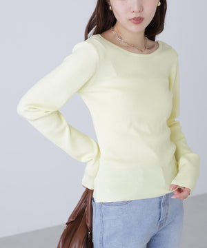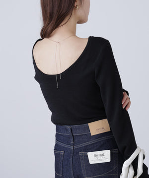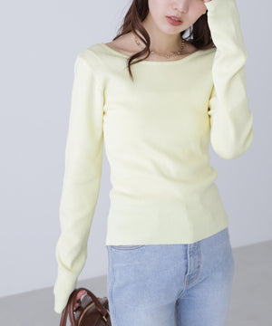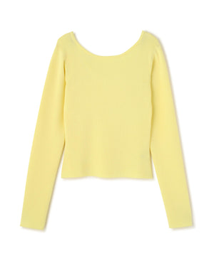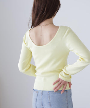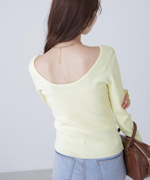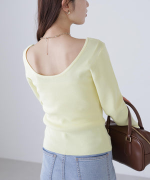 【着回し◎】一枚でも着映える、バックオープンデザインのコンパクトニット。ジャケットのインナーとしても活躍してくれます。デニム・スラックス・イレヘムスカート合わせがおすすめ。ロングシーズン着用可能なさらりとしたタッチのニット素材を使用。トレンドカラーのイエローも揃えています。