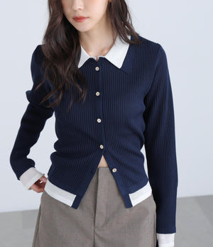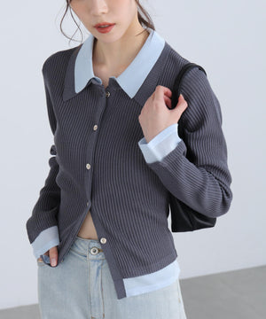【RIO企画】レイヤー襟ポロリブニット〈MFM〉