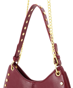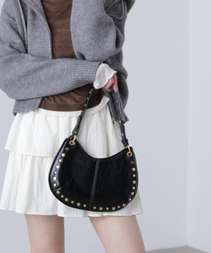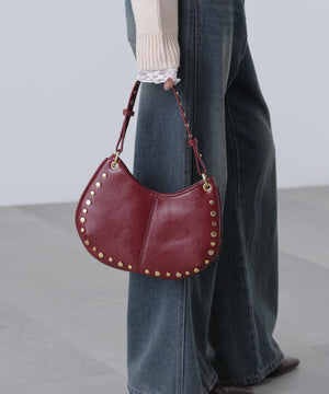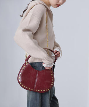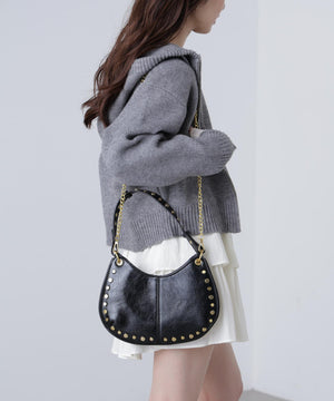 ころんとしたフォルムが可愛らしいスタッズ付きバッグ。手持ちハンドルと肩掛けできるチェーンショルダーが付いている2way仕様。アクセサリー感覚で持てるデザインです。