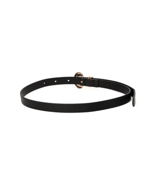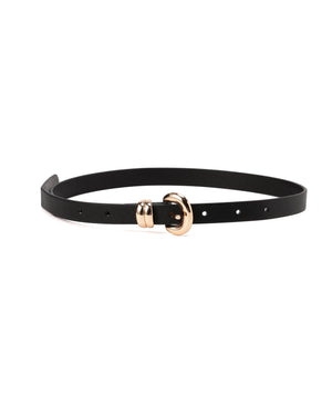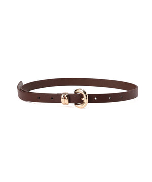 シンプルなデザインで合わせやすいミドル幅ベルト。存在感のある変形バックルがコーディネートにさりげないアクセントをプラスしてくれます。