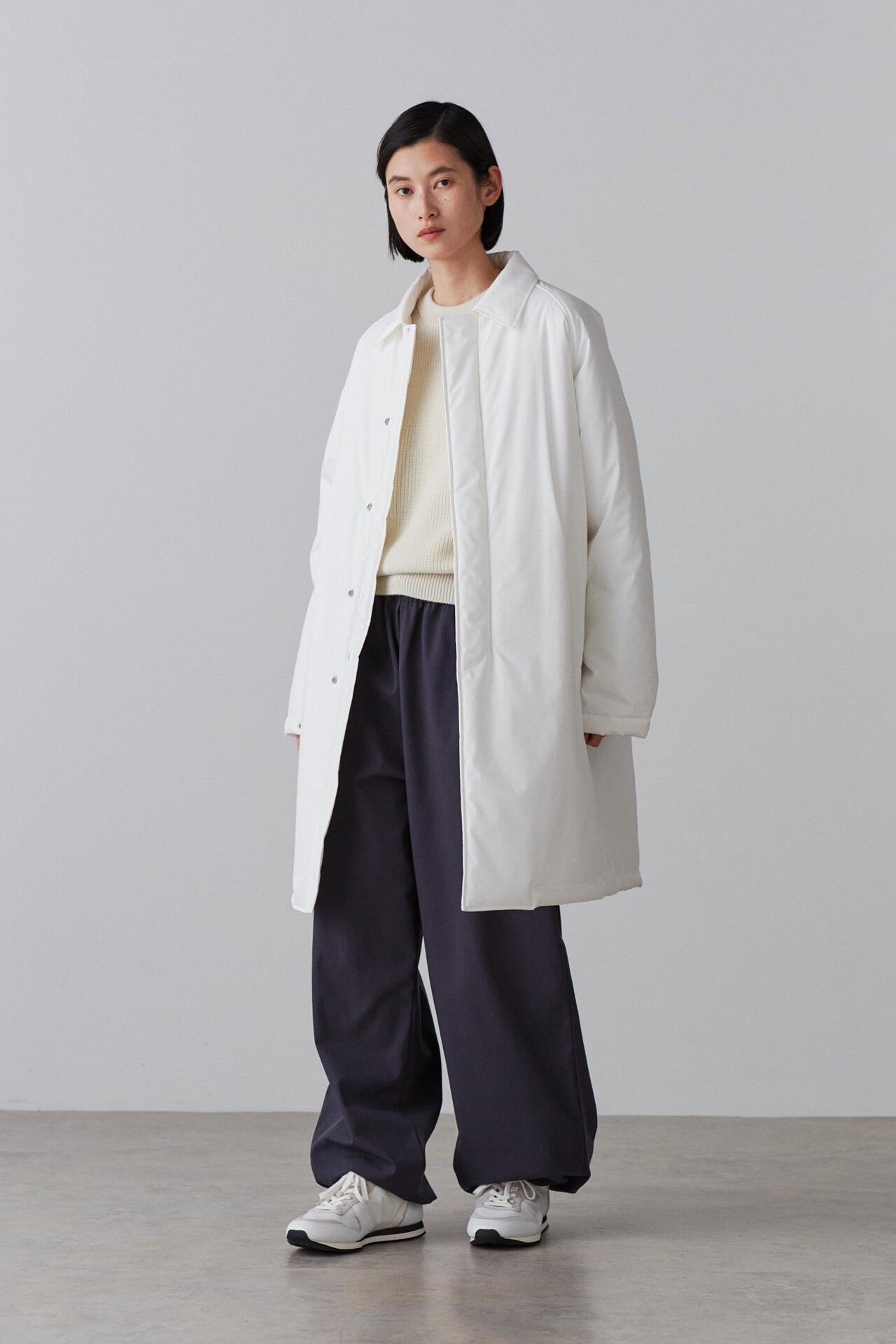 経糸には環境負荷の低い厳選されたコンパクト糸のオーガニックコットン、緯糸にはソフトかつ軽やかなストレッチ性、形態安定性にに優れたソロテックスを使用。中綿にも保温性があり膨らみのある再生繊維を使用した原料を使用しています。