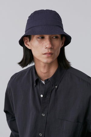 インドのオーガニックコットンを使用したラフな風合いのサテン素材。着用しやすいバランスのバケットハットです。サイズはユニセックスでお選びいただけます。