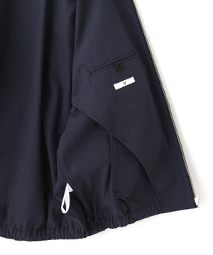 リサイクルポリエステルとオーガニックコットンを使用した高密度の強撚ツイルのため、軽くすっきりした風合い。古着をベースとし、アジャスターを追加したスウィングトップです。