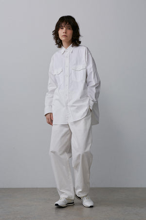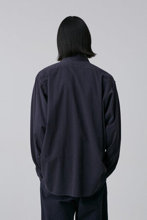 インドのオーガニックコットンを使用したサテン素材。ややラフな風合いとゆったりしたシルエットのワークシャツ。サイズはユニセックスでお選びいただけます。