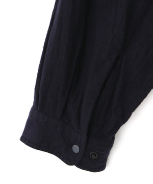 タテ糸に綿、ヨコ糸にテンセルを使用したビエラ素材を両面に丁寧に起毛を掻くことで、タッチが柔らかくなり、落ち感がありながらも軽い風合いに仕上げたスナップボタン仕様のシャツです。