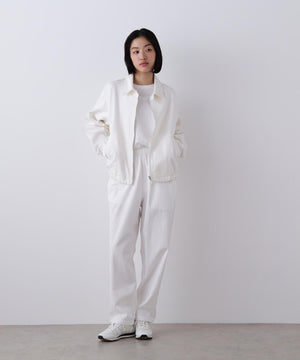 オーガニックコットン糸を使用したサステナブルなデニム生地を採用したスウィングトップです。インディゴカラーは、生地ワッシャー加工とフェード加工により、ヴィンテージライクな風合いを表現。ホワイトは糊を使用せず、ソフトなタッチ感を引き出す加工を施しています。古着をベースにしたデザインに加え、アジャスター仕様を取り入れることで、機能性と快適性も兼備。