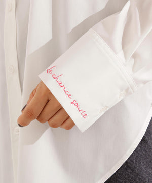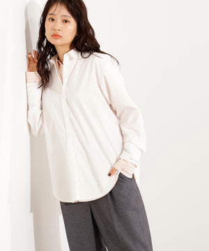 1枚でもレイヤードでも映える、365日楽しめるマルチシャツ。袖口の配色刺しゅうがさり気ないポイントです。裾サイドはラウンドスリット入りで抜け感をプラス。袖口から刺しゅうをちらっと見せるレイヤードスタイルもおすすめです。