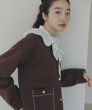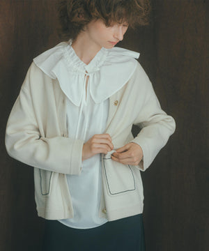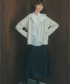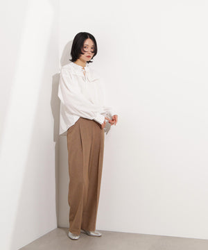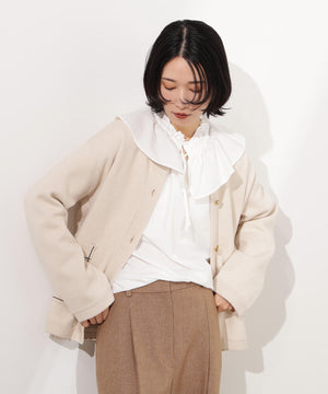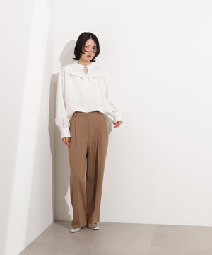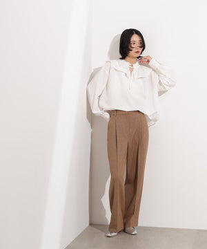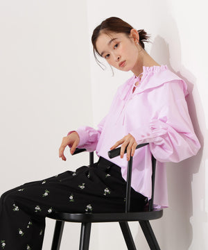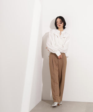 新鮮なフリルネックが際立つブラウス。襟ぐりと胸側に向かって付けているダブルフリルが着映えるデザインです。抜け感のあるスリットネックもポイント。1枚着としても、ニットカーディガンなどとレイヤードして、フリル襟を見せる着こなしもおすすめです。