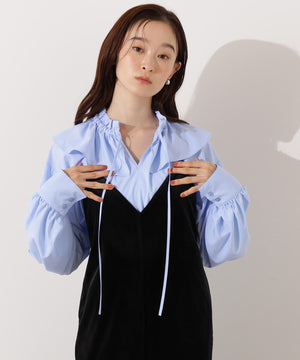 ダブルフリルネックブラウス