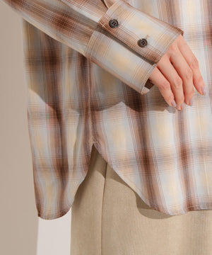 これからの季節にぴったりなチェック柄のオーバーシャツ。ゆとりのあるサイズ感なので体のラインを拾いにくいシルエットです。裾サイドはラウンドカーブが効いたスリット入りで、アウトスタイルが様になるデザイン。1枚着はもちろん、中にカットソーとレイヤードしたり、前ボタンを開けて羽織りとしても着ていただけます。