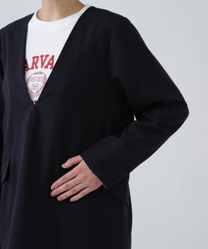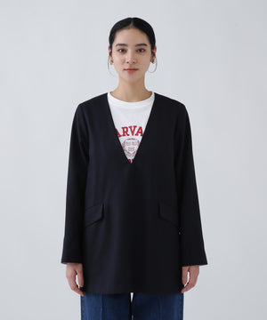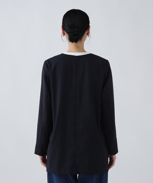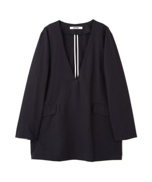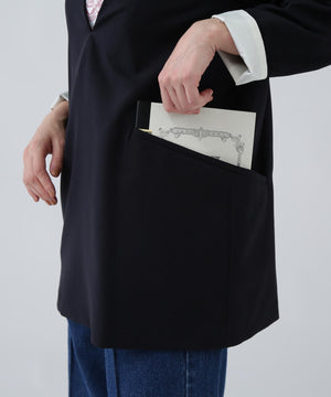A4書類がすっぽり入る大容量フラップポケット付きで、荷物をスマートに持ち運べるブラウス。袖口を折り返すと配色になり、こなれ感を演出してくれます。同素材のパンツとのSETUPスタイルもおすすめです。