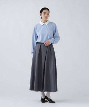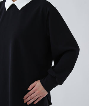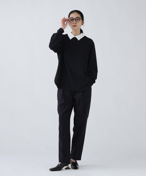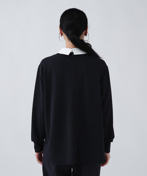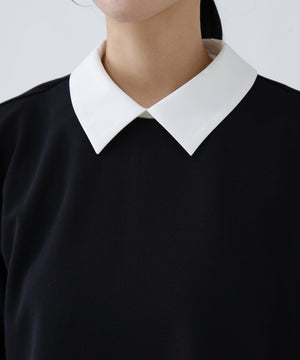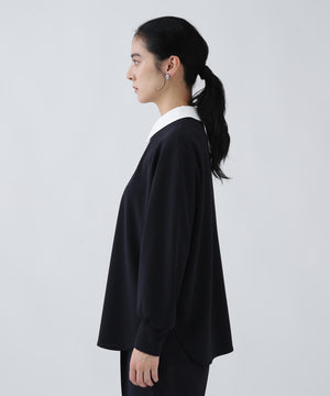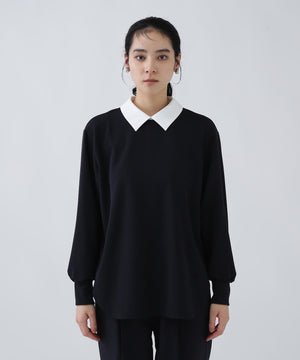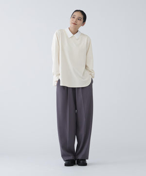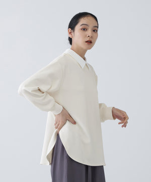 ロングシーズン着られる襟付きトップス。その日の気分やシーンに合わせて、襟を取り外しても着られる2wayデザインです。裾はカーブが効いているので、アウトでもフロントタックインでもご着用いただけます。