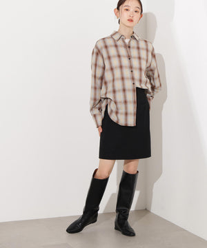 フラットな素材を使ったベーシックで合わせやすいミニスカート。程よい厚みのある素材なのでシルエットを美しくキープします。コンパクトな丈感で脚長効果を期待。トップスインしてキレイめにも、オーバーサイズのトップス合わせでカジュアルスタイルにも着回せます。