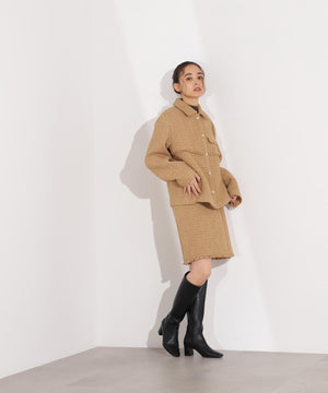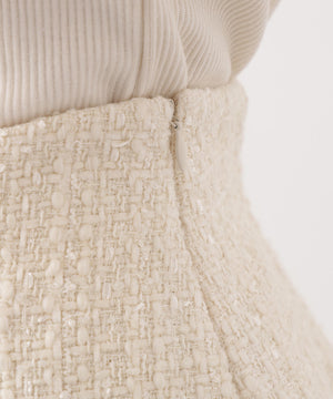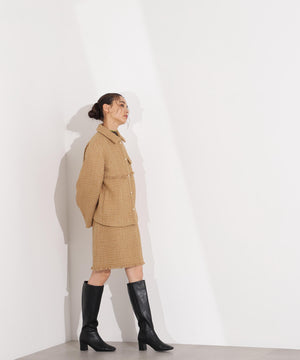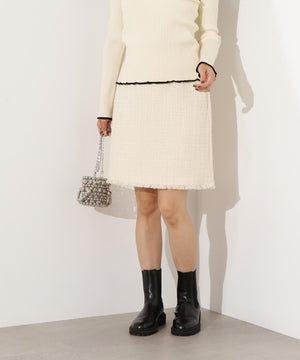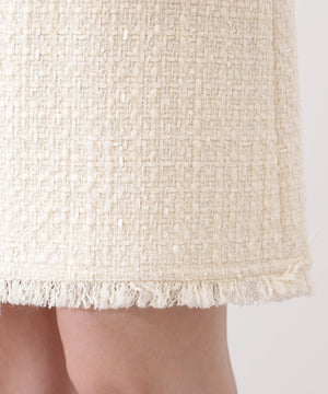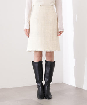 クラシカルな雰囲気のツイードミニスカート。表情豊かなツイード素材を使用し、季節感あふれる仕上がりに。裾にはさりげないフリンジが施され、動くたびに軽やかなアクセントをプラスします。コンパクトな丈感で脚をすっきりと見せ、女性らしいシルエットを演出。同素材のジャケットとセットアップで着用すれば、統一感のある洗練されたスタイルが完成します。