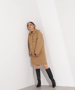 立体感のある織りで暖かみのあるツイード生地を使用。