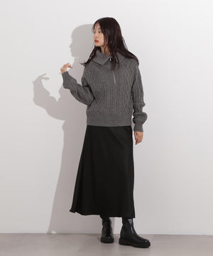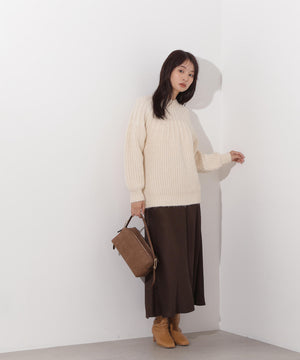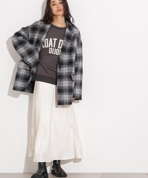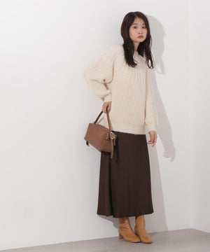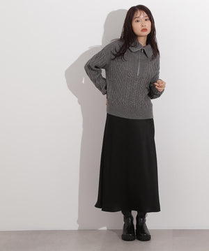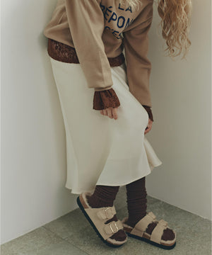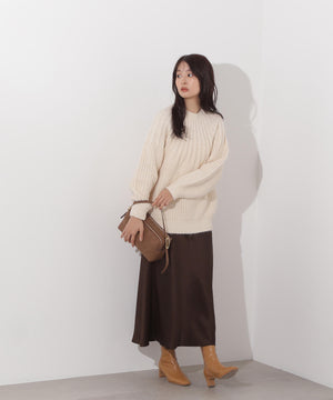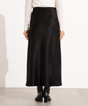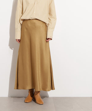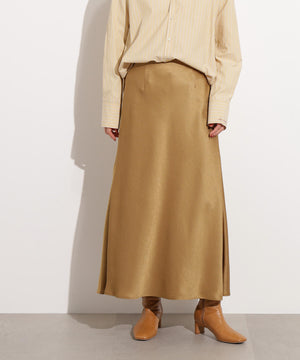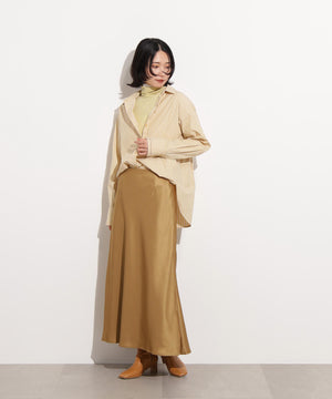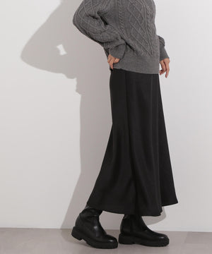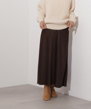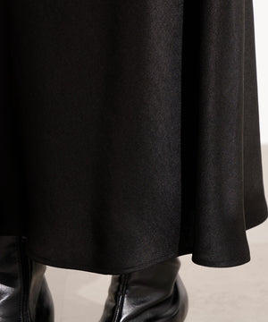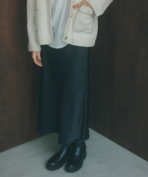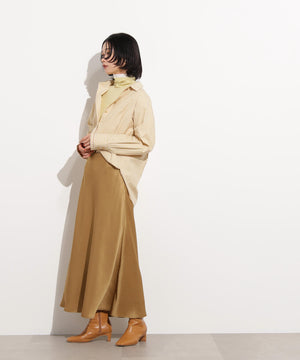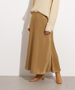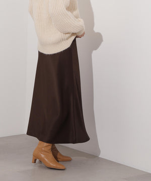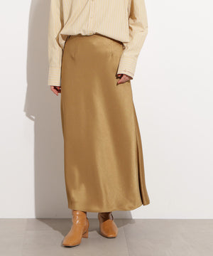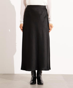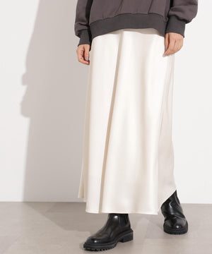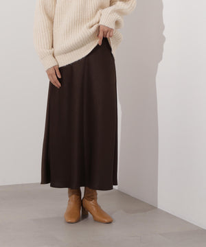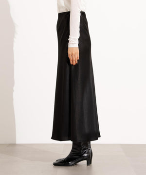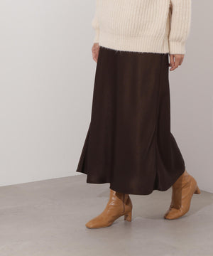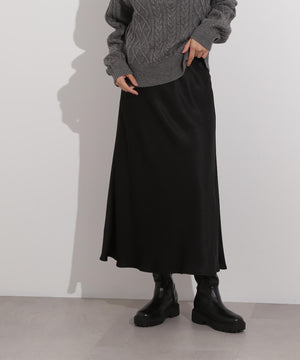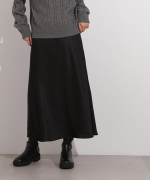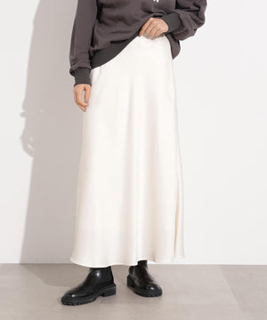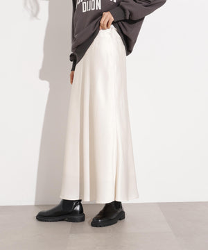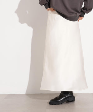 バイアス使いで自然なドレープ感があり、裾のふんわり柔らかなフレアがカジュアルスタイルに好相性のサテンスカート。重くなりがちな秋冬スタイルのコーディネートに艶やかさをプラスします。ニットやスウェット、Tシャツなどのカジュアルコーディネートがおすすめです。