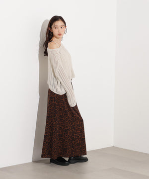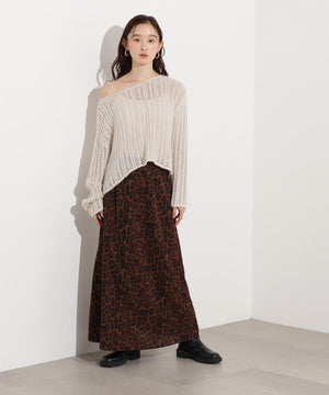 今年トレンドのレオパード柄が目を引くナロースカート。ベルト切り替えによってウエストまわりをすっきり見せつつ、後ろはゴム仕様でリラクシーなはき心地です。トレンドのブラウンベースのレオパード柄で、シンプルなトップスと合わせるだけで、カジュアルスタイルをアップデートしてくれます。