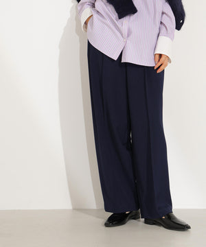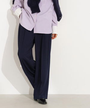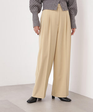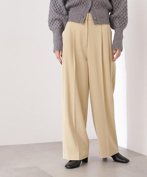 ほどよいワイドなシルエットのツータックパンツ。ウエストまわりに立体感を持たせたツータックで腰まわりをカバーしつつ、すっきりとした印象に見せてくれます。ベーシックなデザインは着回し力抜群。どんなトップスとも合わせやすく、キレイめにもカジュアルスタイルにも活躍します。