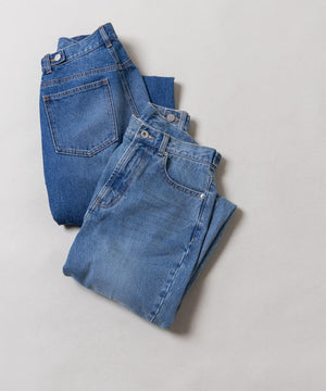 デニム製品は摩擦により色移りする可能性がございます。白や淡色系衣料品や雑貨などご着用の際は十分にご注意ください。