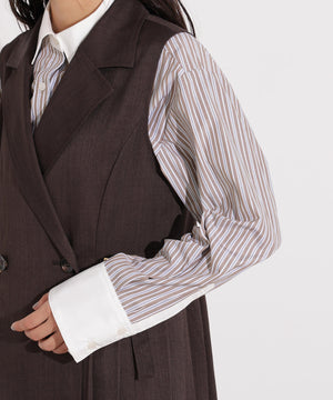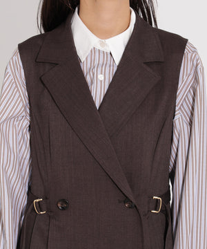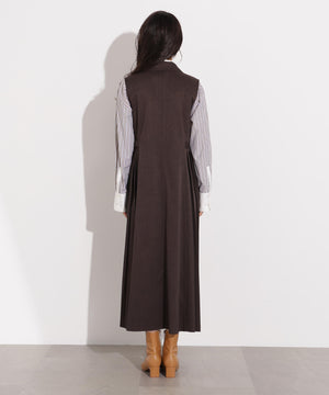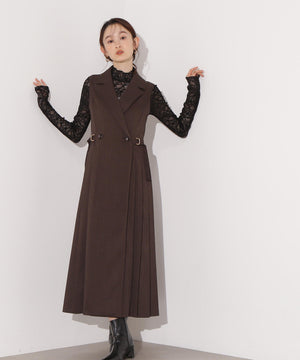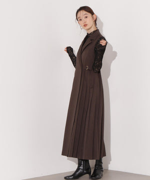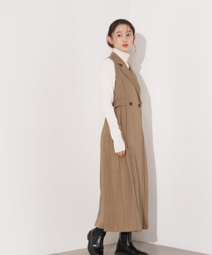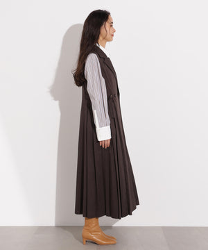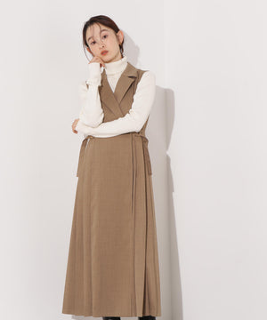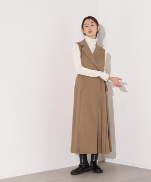サイドプリーツが華やかさを加えるテーラージャンスカ。すっきりとしたテーラードデザインに、動くたび揺れるプリーツが程よい女性らしさをプラス。ブラウスやニットと合わせるだけで洗練された印象に見せてくれます。オンオフ問わず使える万能アイテムで、オフィスから休日のお出かけまで幅広く活躍。ボタンを開けて羽織としても着用いただけます。