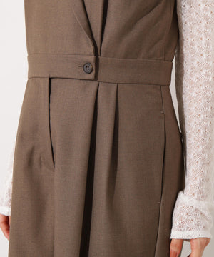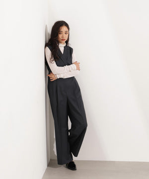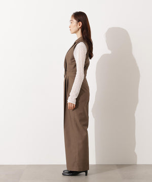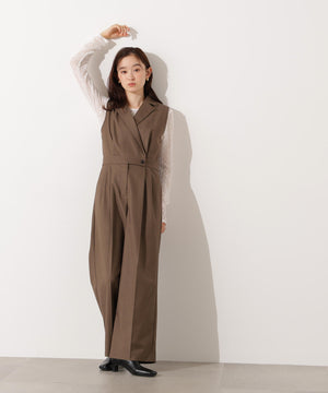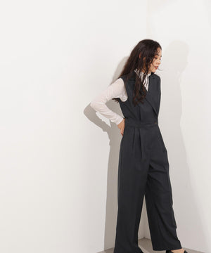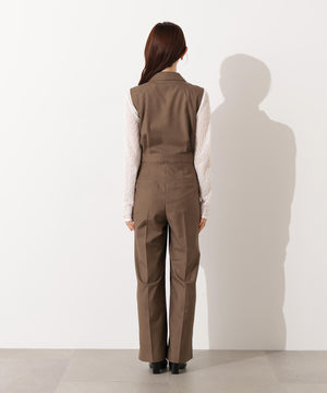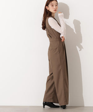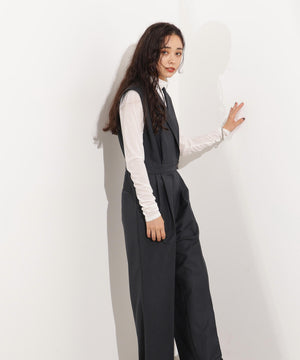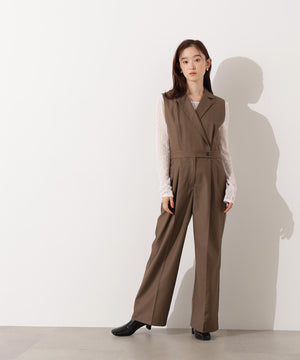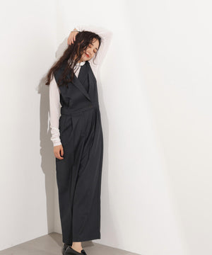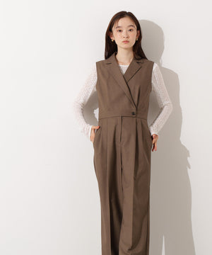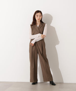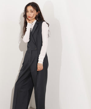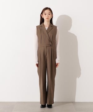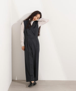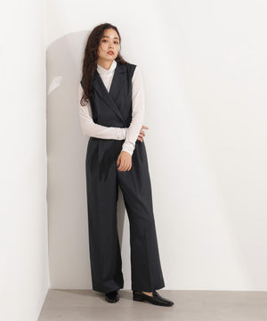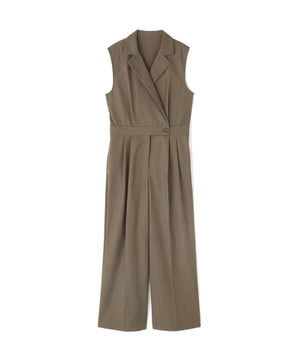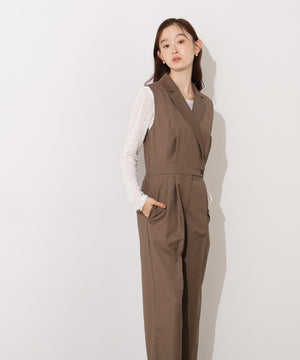 マニッシュな雰囲気のテーラーカラーのジャンプスーツ。ゆったりとした着心地ながら、テーラーカラーのきちんと感もあるデザインです。中にカットソーやブラウスなども合わせやすく、インナーを変えるとロングシーズン楽しめます。両脇ポケット付きです。