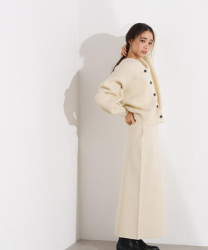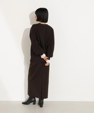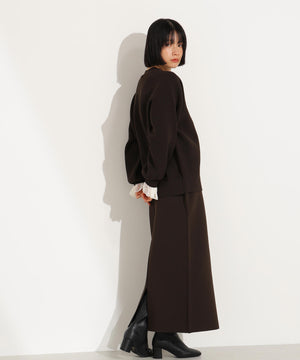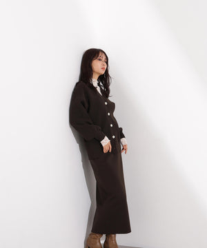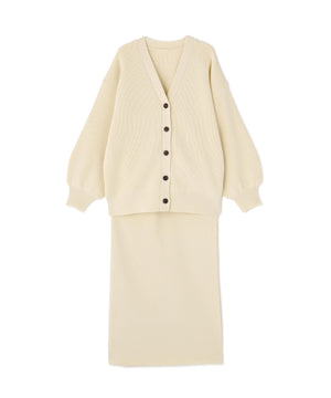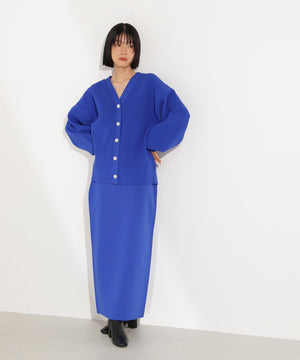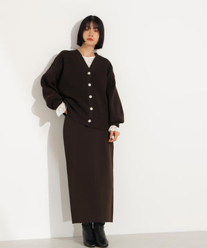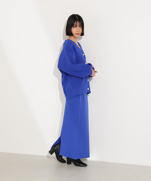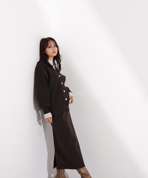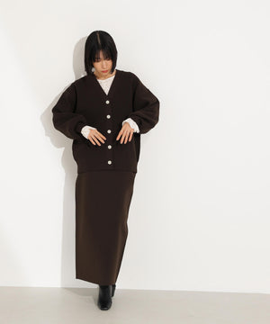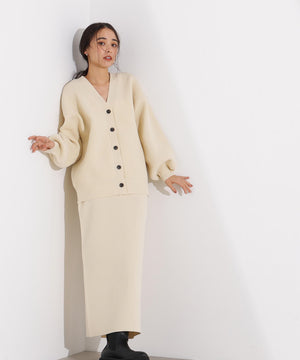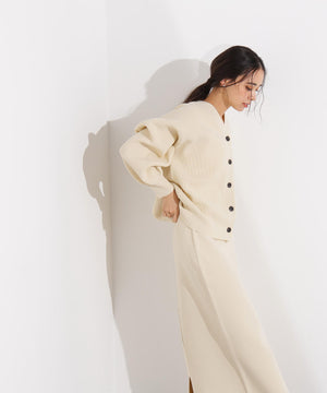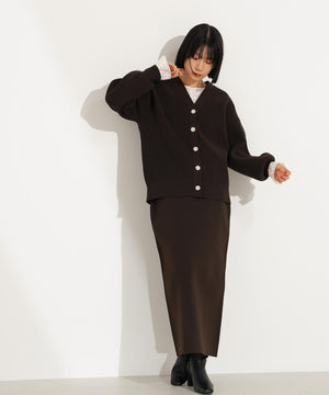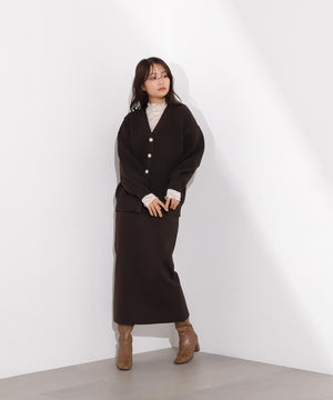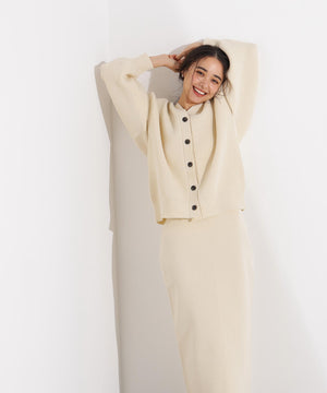 上下を異なる編地で表情豊かに仕上げたフォルムニットカーデセットアップ。カーディガンは立体感のある片畦編みで、丸みのあるフォルムが特徴。スカートはダブルジャガード編みでしっかりとした生地感ときれいなシルエットを叶えます。後ろスリット入り。SETUPは着るだけでこなれた印象に見せてくれます。それぞれ単品使いもできるため着回し力は抜群です。