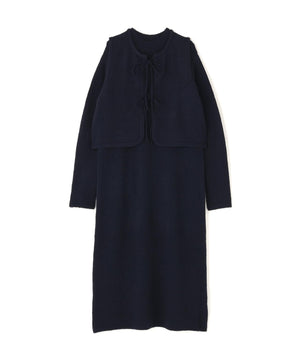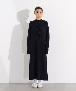 リボンがアクセントのニットベストと長袖ワンピースがセットになったアンサンブルワンピース。重ね着スタイルが簡単に完成し、レイヤードに迷わないデザインです。ベストのリボンがフェミニンな印象をプラスし、大人かわいい着こなしにぴったり。単品でも着回せるので、デイリーからお出かけまで幅広く活躍してくれます。