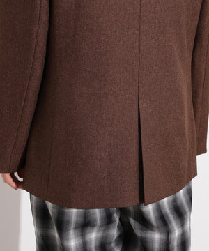 チェック柄、ネイビーは無地見え、カーキとブラウンは梳毛ライクなメランジ調の素材を使用。袖裏はストライプ生地を使用しています。