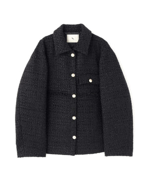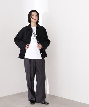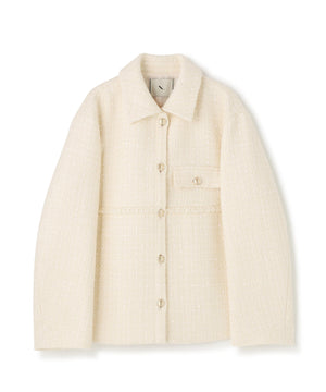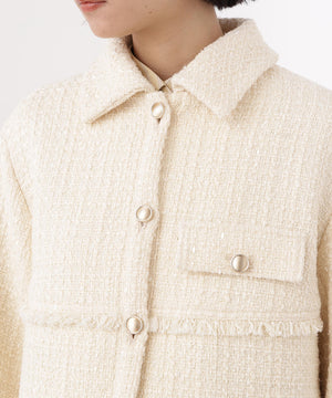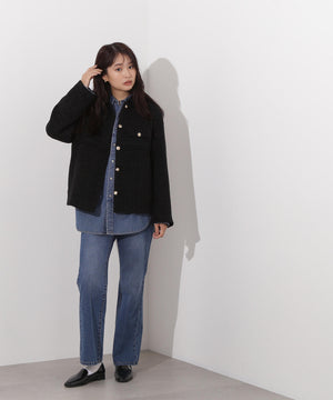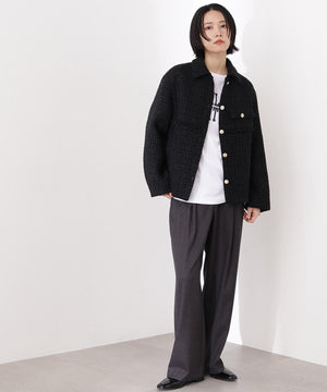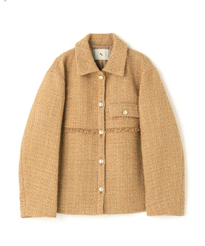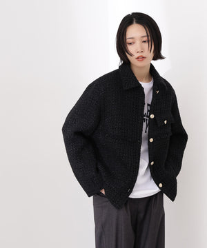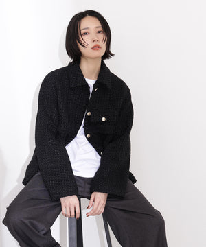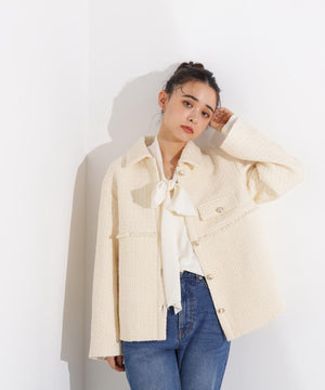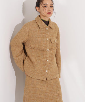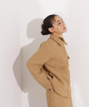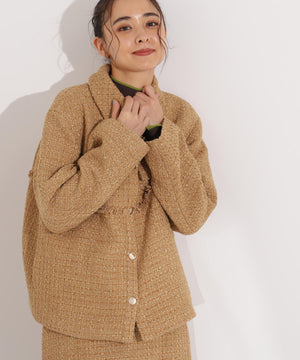 クラシカルな雰囲気のツイードジャケット。きちんと感のあるステンカラーが上品な印象を与え、表情豊かなツイード素材がコーディネートに華やかさをプラスします。ゆったりとしたシルエットでリラックス感があり、パンツやスカートとも好相性。同素材のミニスカートとセットアップで着用すれば、より洗練されたスタイルが完成します。