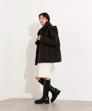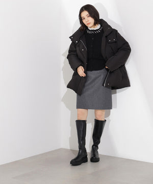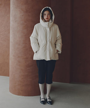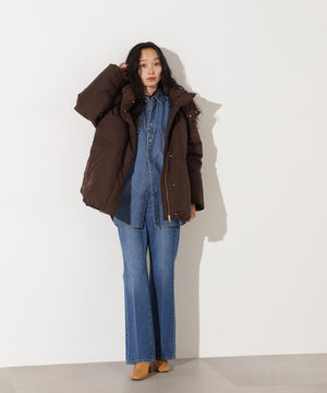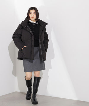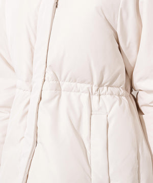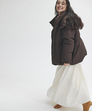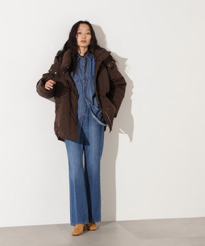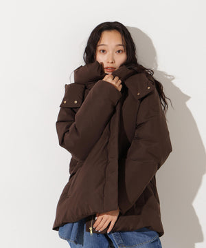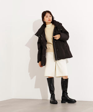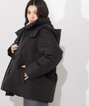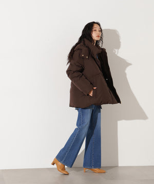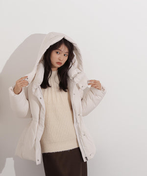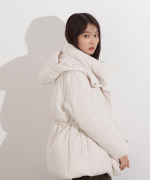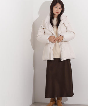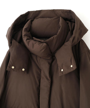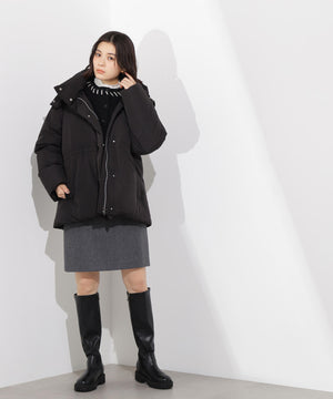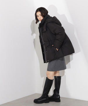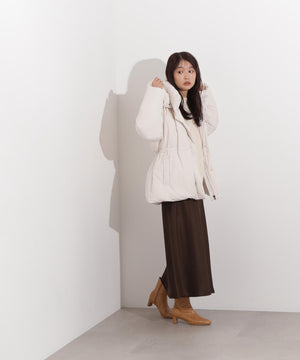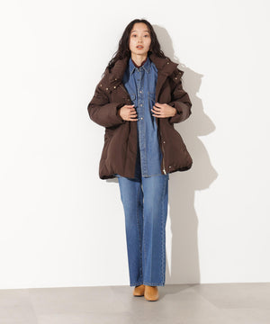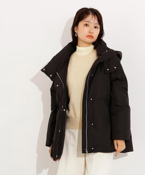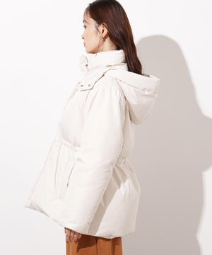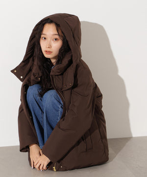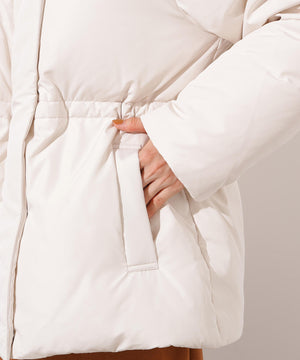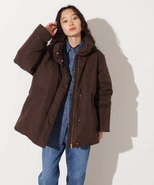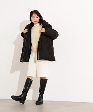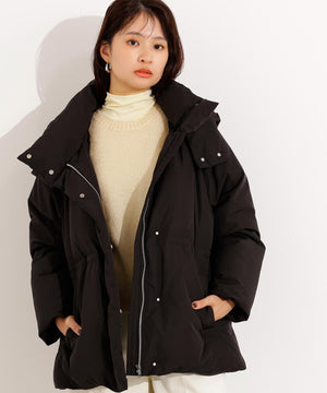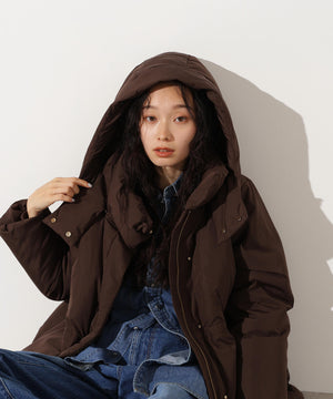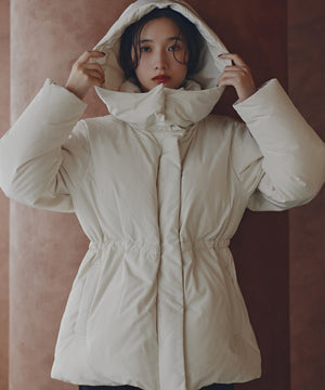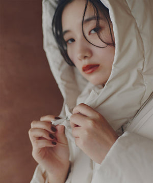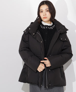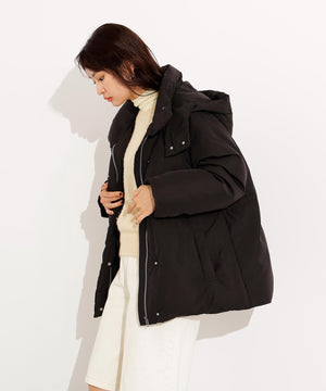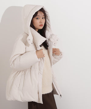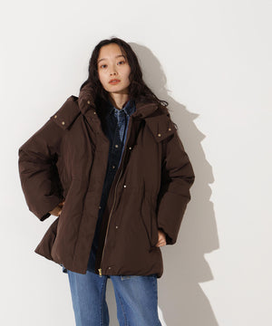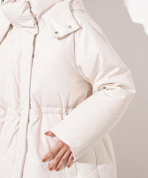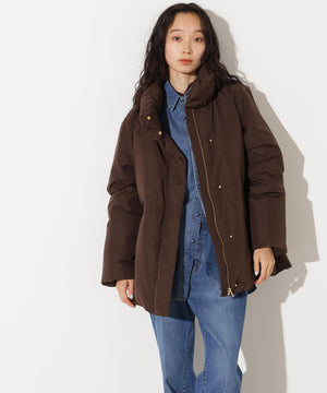 ミドル丈のゆったりとしたサイズ感でコーディネートを選ばないダウンコート。ベーシックなデザインなのでキレイめにもカジュアルにも幅広いスタイリングと相性バツグンです。袖口は内側リブ仕様で風を通しにくく、暖かく着用できるのも嬉しいポイント。ウエストや裾のドロストコードを絞るとシルエットの変化も楽しめます。フードはファスナーで取り外し可能。デイリーから通勤シーンまで活躍できるアウターです。