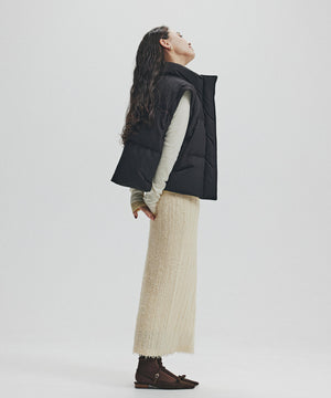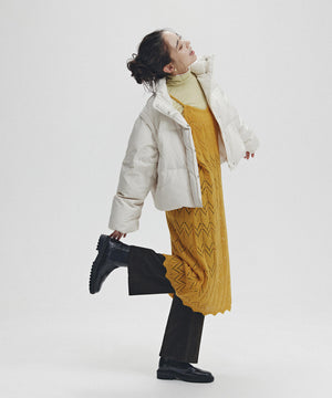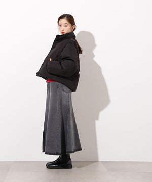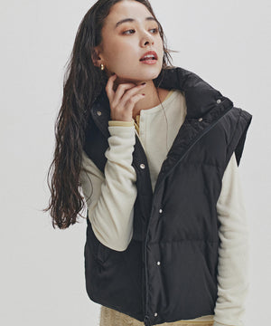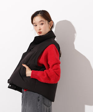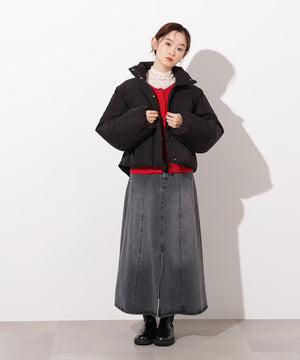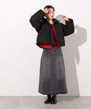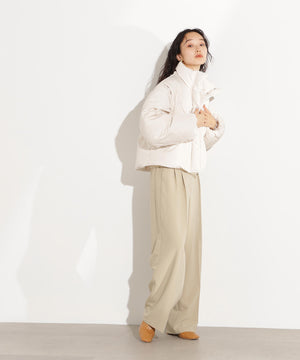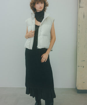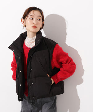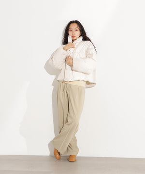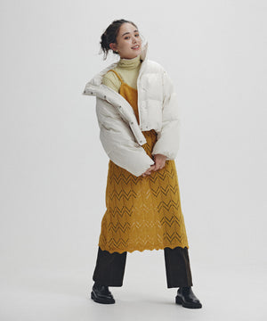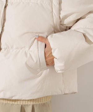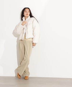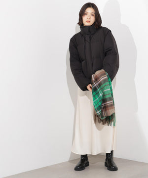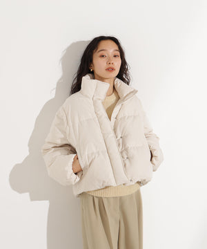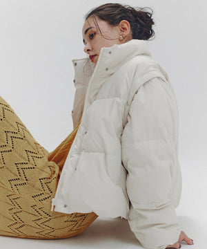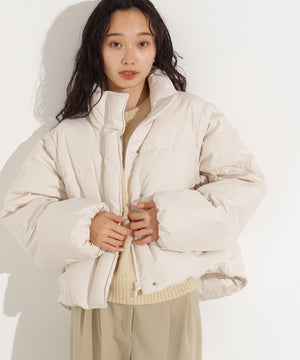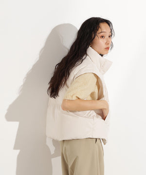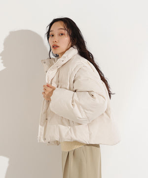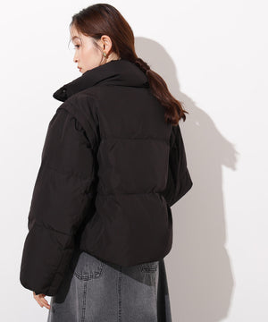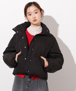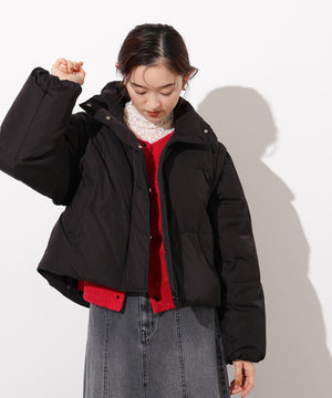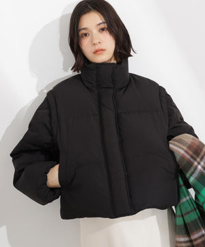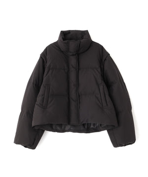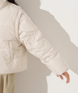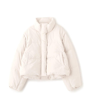 袖を取り外してベストとしても着用できる2WAY仕様のダウンジャケット。ボトムスを選ばない着回しの効くショート丈です。袖口はゴム仕様で風を通しにくく、暖かく着用できるのも嬉しいポイント。裾のドロストコードを絞るとシルエットの変化も楽しめます。