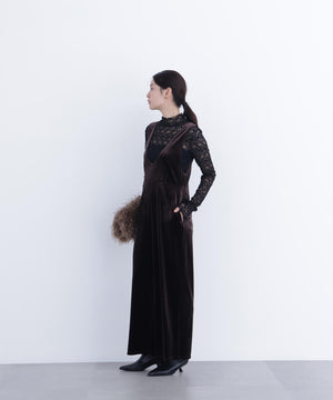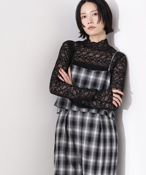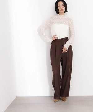 ストレッチレース素材を使用したハイネックカットソー。繊細な透け感がフェミニンな印象を演出します。顔まわりを華やかに見せるハイネックデザインがポイント。程よくフィットするシルエットなのでインナー使いにもおすすめです。一枚で着てもレイヤードスタイルにも映える万能トップスです。