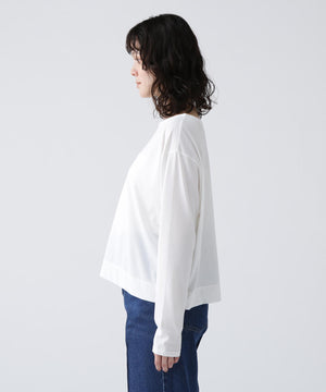 ロングシーズン着られるロンT。暑い時は蒸れにくく、寒い時は衣服内の温度を保持することで快適さを保ちます。キレイめなシルエットなので、デイリーにもオフィスシーンにも着ていただけます。