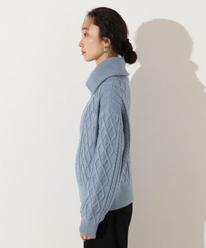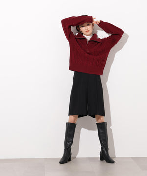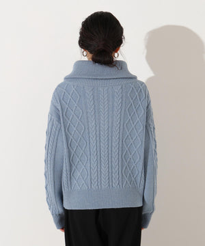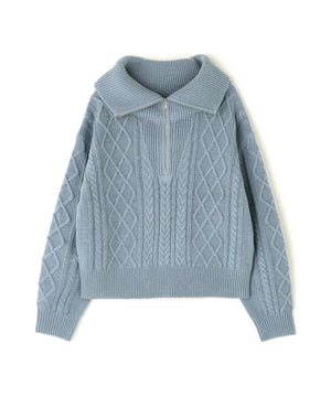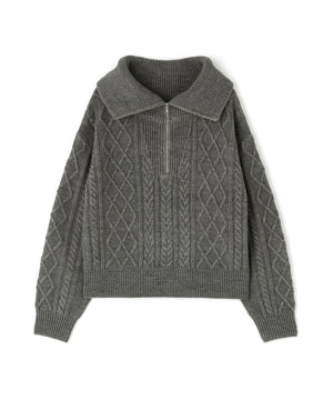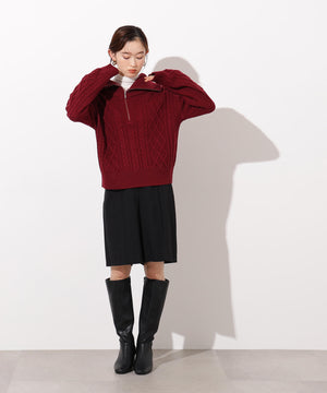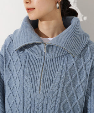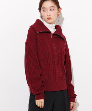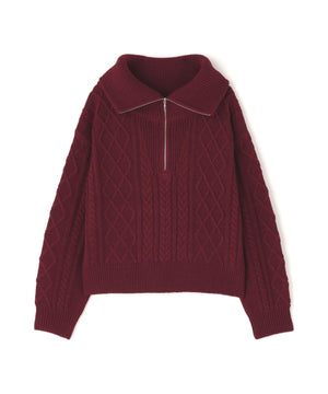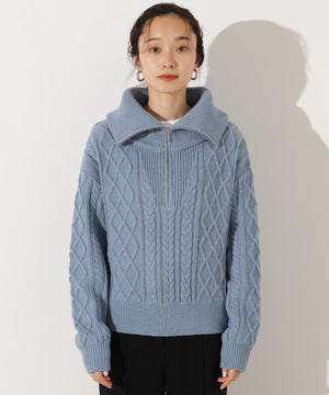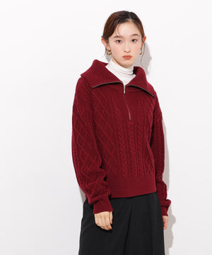 ハーフジップケーブルニット
