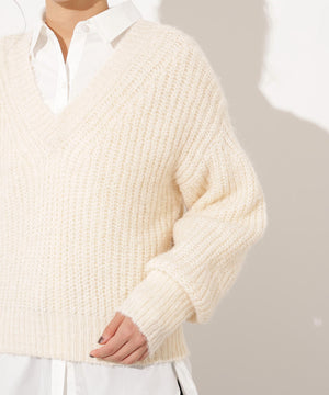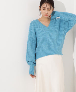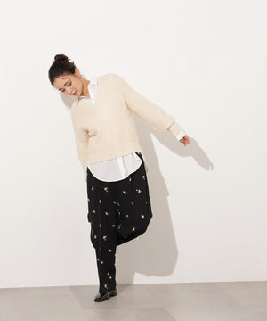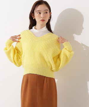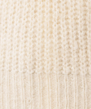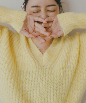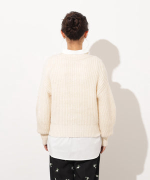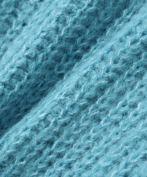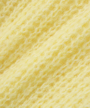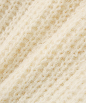 ふわふわの糸を使用した畔編みニット。コンパクトなシルエットながら、糸の柔らかさとボリューム感が引き立つデザイン。肌触りがよく、心地よい暖かさを感じられます。中にシャツやハイネックトップスとレイヤードも可能。シンプルながらも素材感が映える一枚は、コーディネートに取り入れやすく、デイリーに着回せるデザインです。