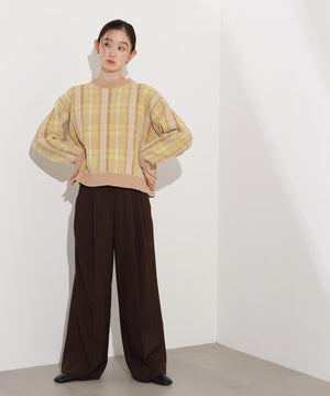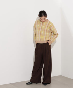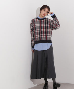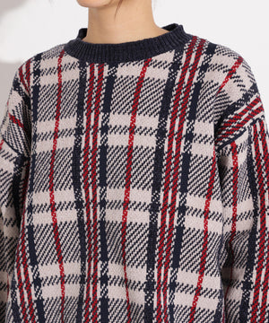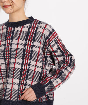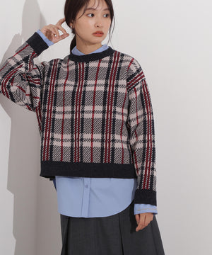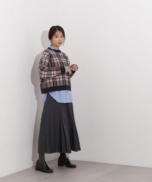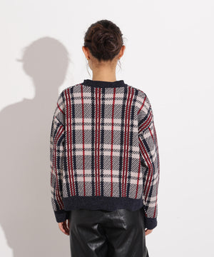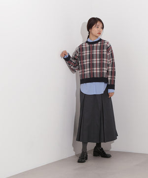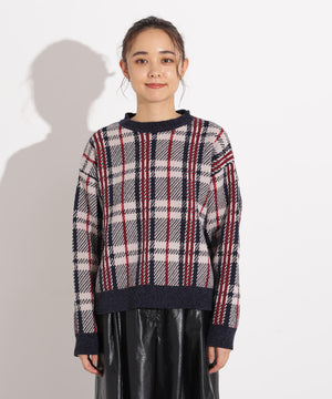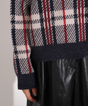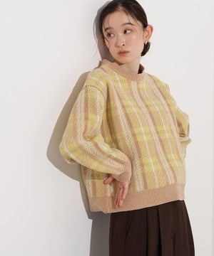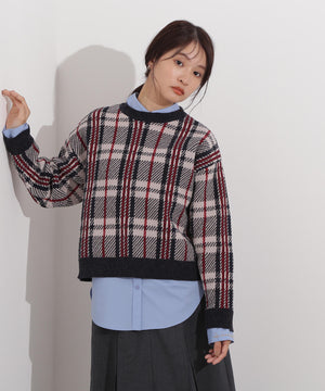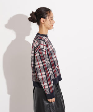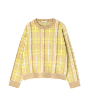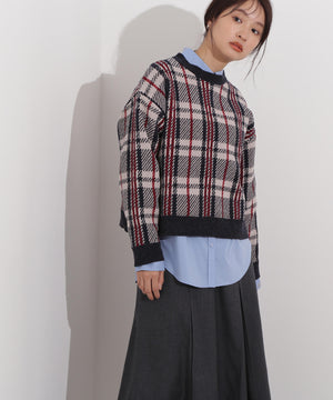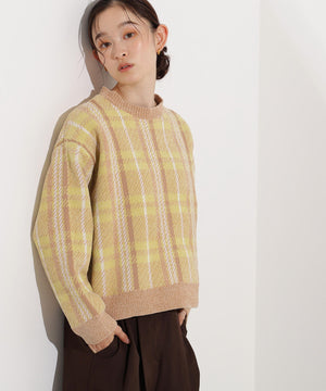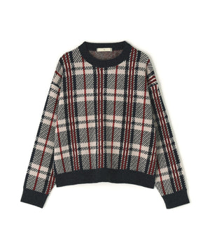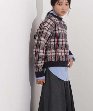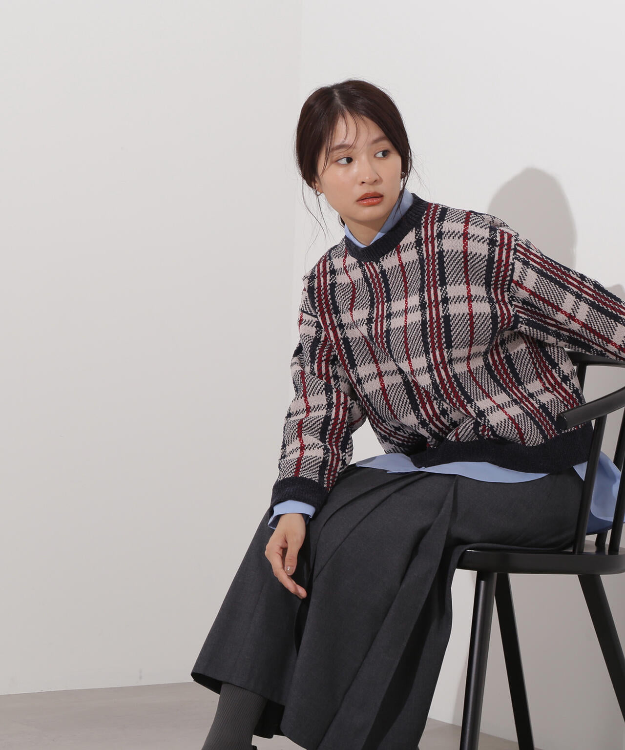 モール糸で仕立てたジャガード編みのチェック柄ニット。コンパクトながらもボクシーなシルエットが今年らしい一枚。鮮やかなカラーがアクセントとなり、コーディネートに華やかさをプラスします。程よい厚みで暖かく、秋冬スタイルのデイリー使いにぴったり。シンプルなボトムスと合わせて存在感を楽しめるアイテムです。