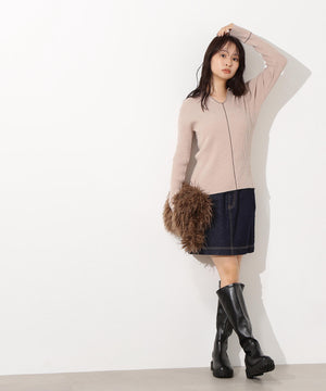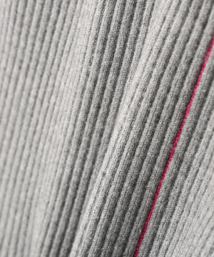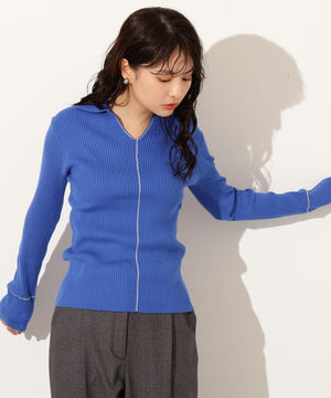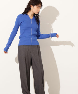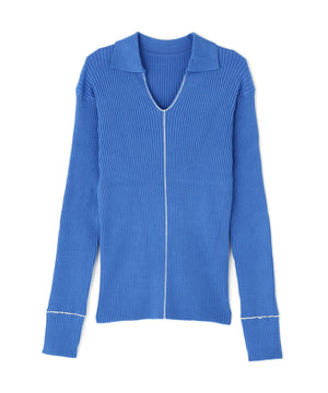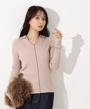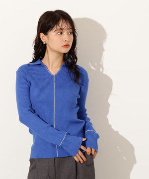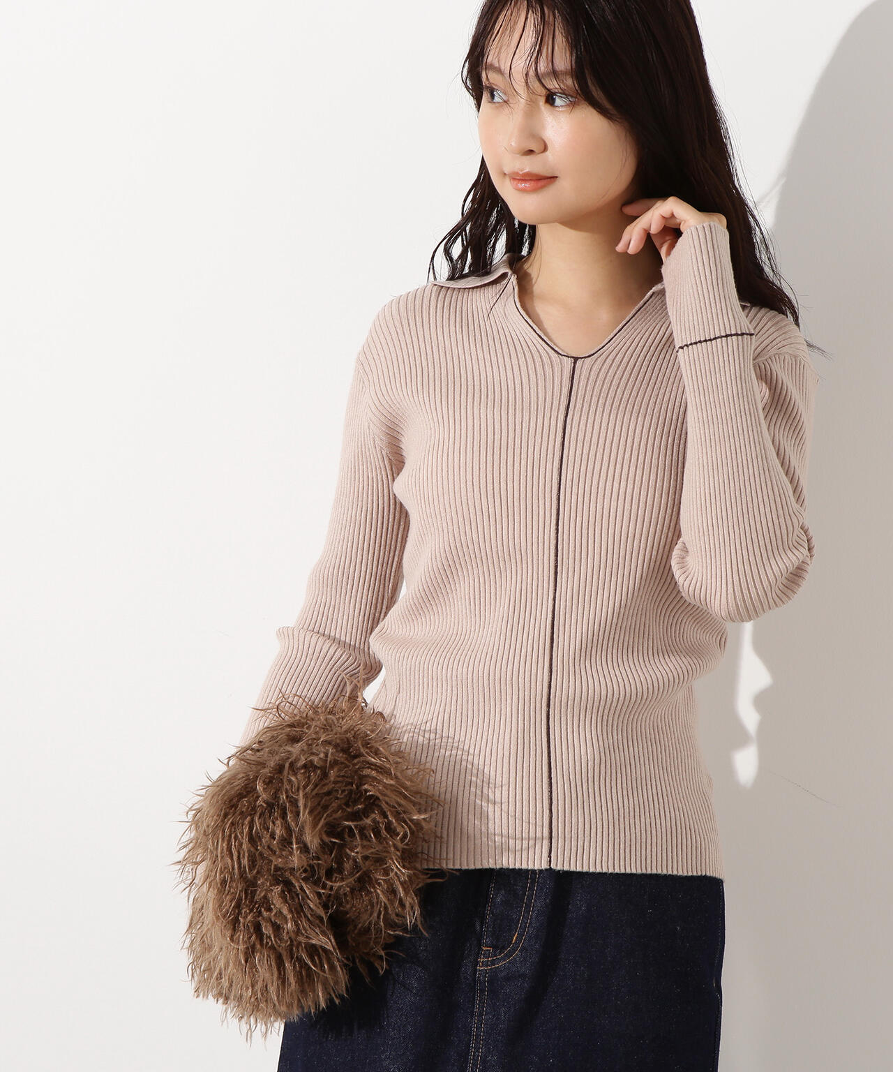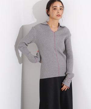 配色ラインがアクセントのスキッパーリブニット。ハイゲージならではのキレイな編み目で、上品な抜け感を演出します。シンプルながらも存在感があり、スタリングが映えるデザインです。