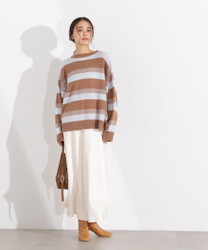 コーディネートに明るさと遊びこころを加えてくれる、キャッチーな配色のボーダーニット。ゆったりとしたサイズで体のラインを拾わず、リラックスした着心地ながらもおしゃれ見えするシルエットです。