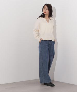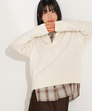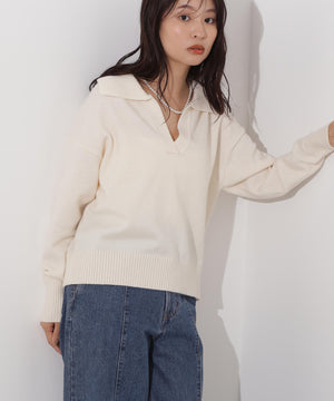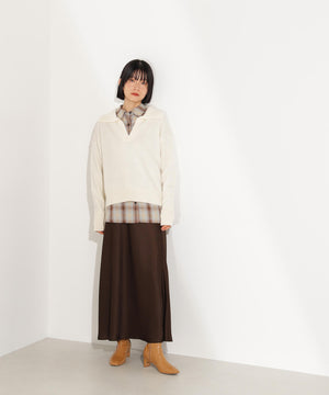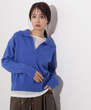 ゆるっとしたボクシーシルエットと抜け感のあるスキッパーネックの組み合わせで、リラクシーながらも女性らしい表情を作るニット。一枚でこなれ感のあるスタイリングが叶います。中にタートルネックのカットソーやニットを使ったレイヤードスタイルもおすすめ。デニムパンツ合わせでカジュアルダウンしたり、ストレートパンツ合わせも楽しめます。