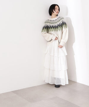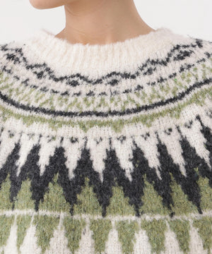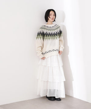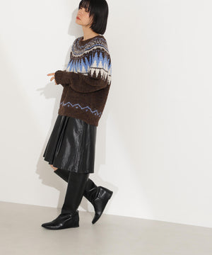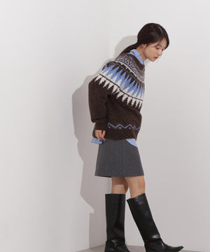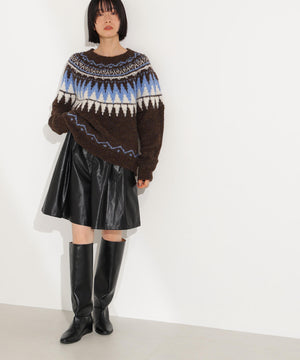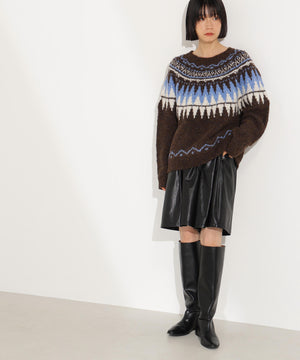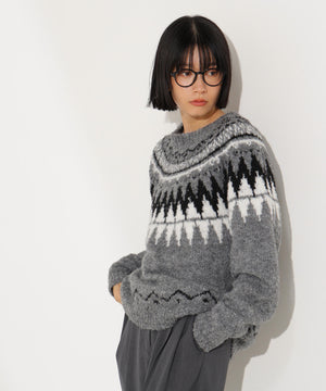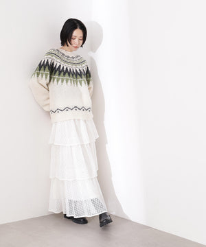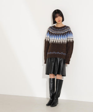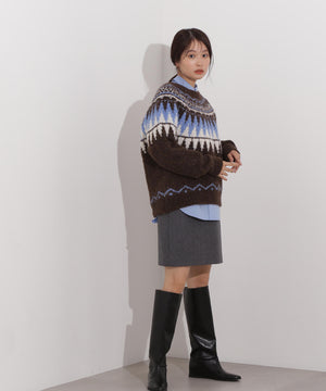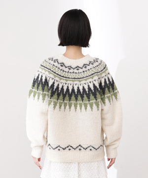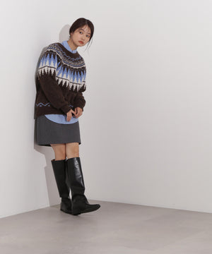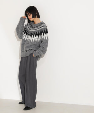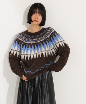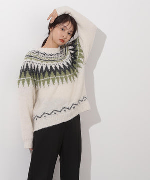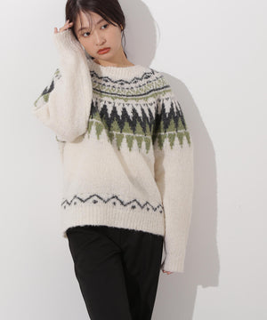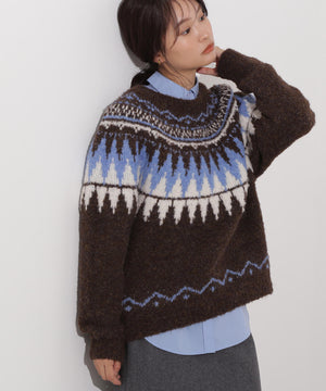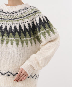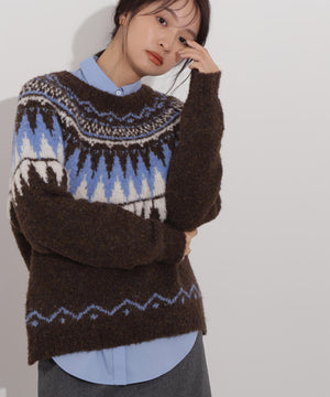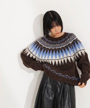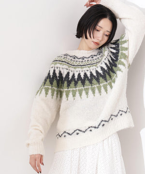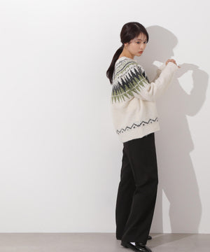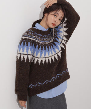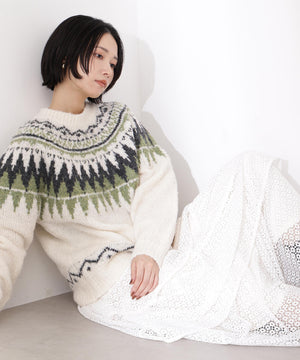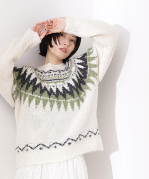 冬らしい温もりを感じさせるノルディック柄ニット。ふんわりとした立体感と柔らかな風合いが魅力で、季節感のあるスタイリングを叶えてくれます。ゆったりとしたシルエットでリラックス感があり、デニムやスカートなどカジュアルなアイテムとも好相性。1枚で主役になる、冬にぴったりのアイテムです。