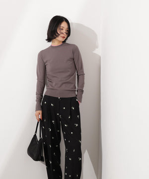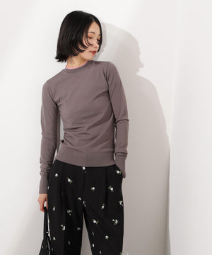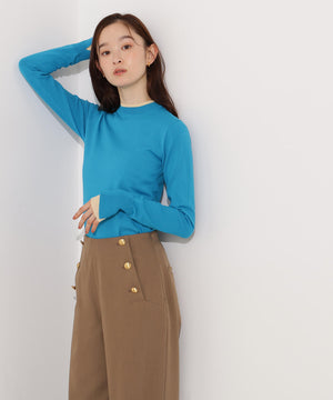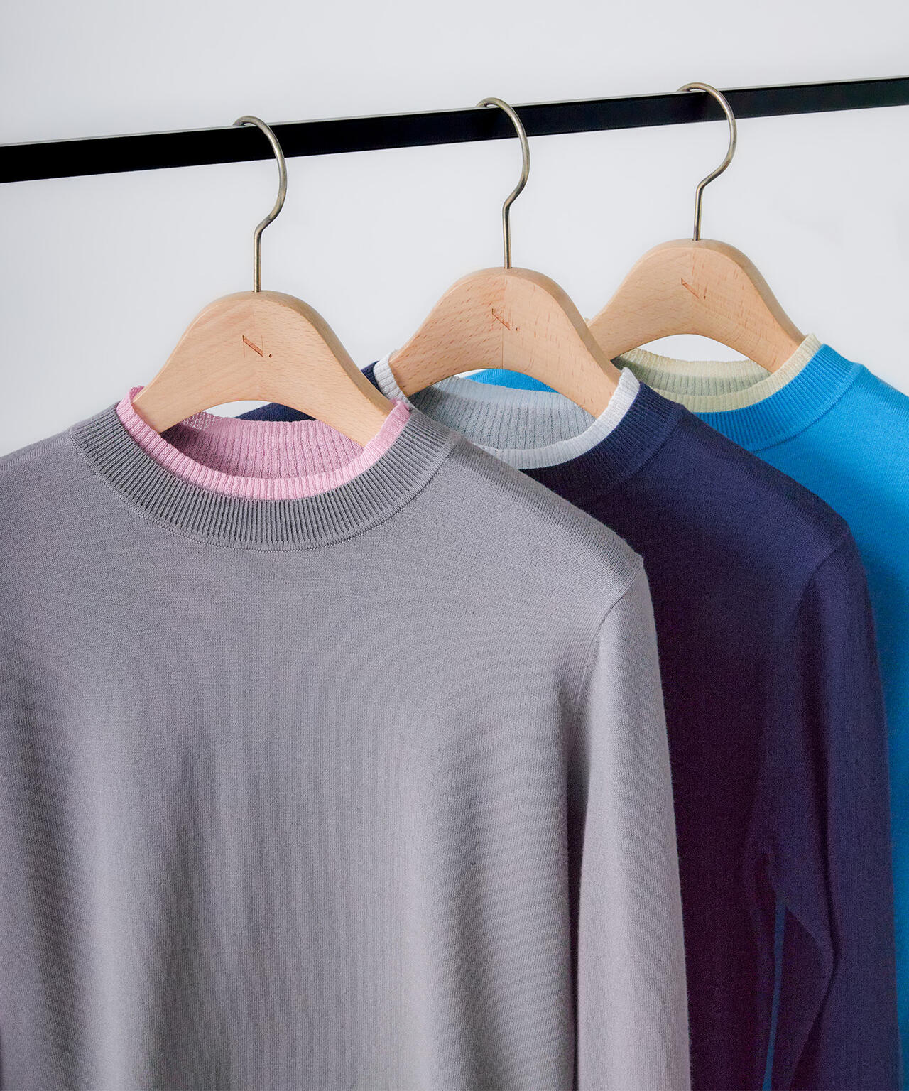 きれいな表面感のハイゲージニットを使用。バイカラー部分はシアー糸ですこし透け感があります。